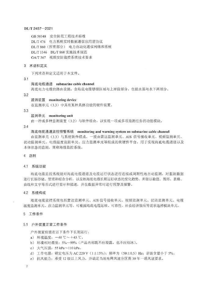 DL/T 2457-2021 海底电缆通道监控预警系统技术规范