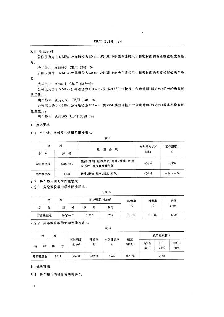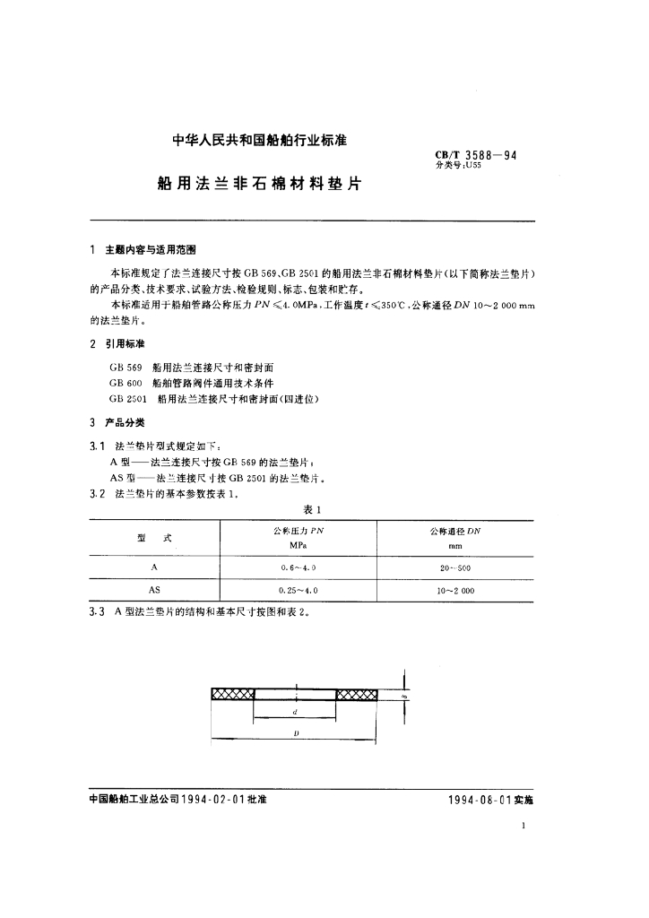 CB/T 3588-1994 船用法兰非石棉材料垫片