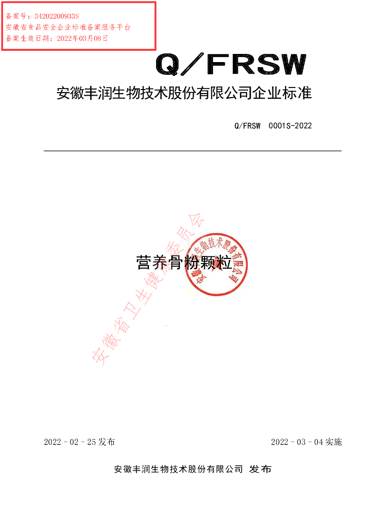 Q/FRSW 0001S-2022 营养骨粉颗粒