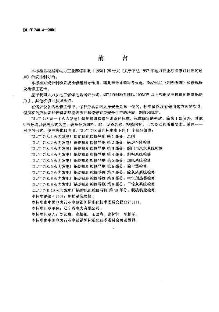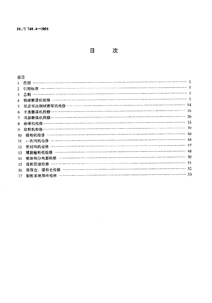 DL/T 748.4-2001 火力发电厂锅炉机组检修导则 第4部分:制粉系统检修