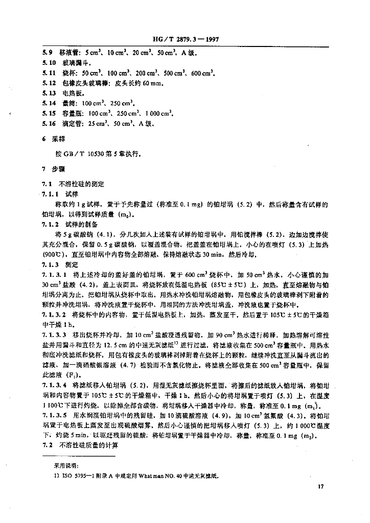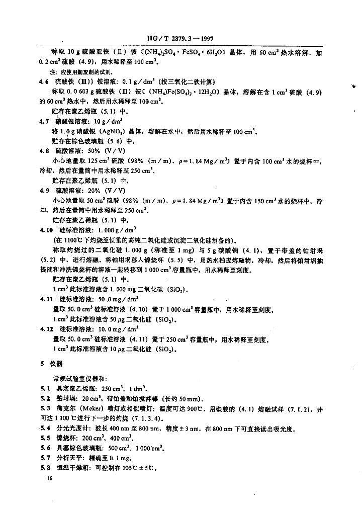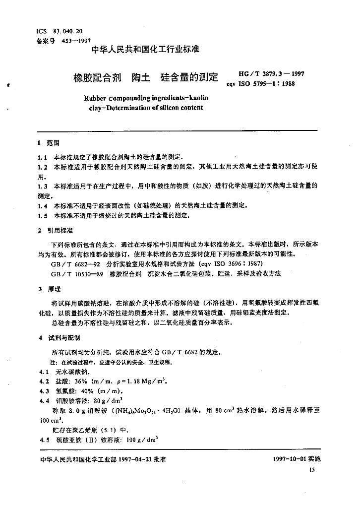 HG/T 2879.3-1997 橡胶配合剂 陶土 硅含量的测定