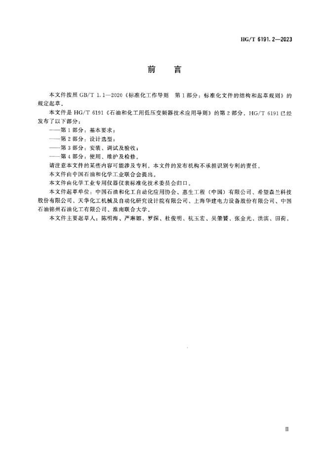 HG/T 6191.2-2023 石油和化工用低压变频器技术应用导则 第2部分:设计选型
