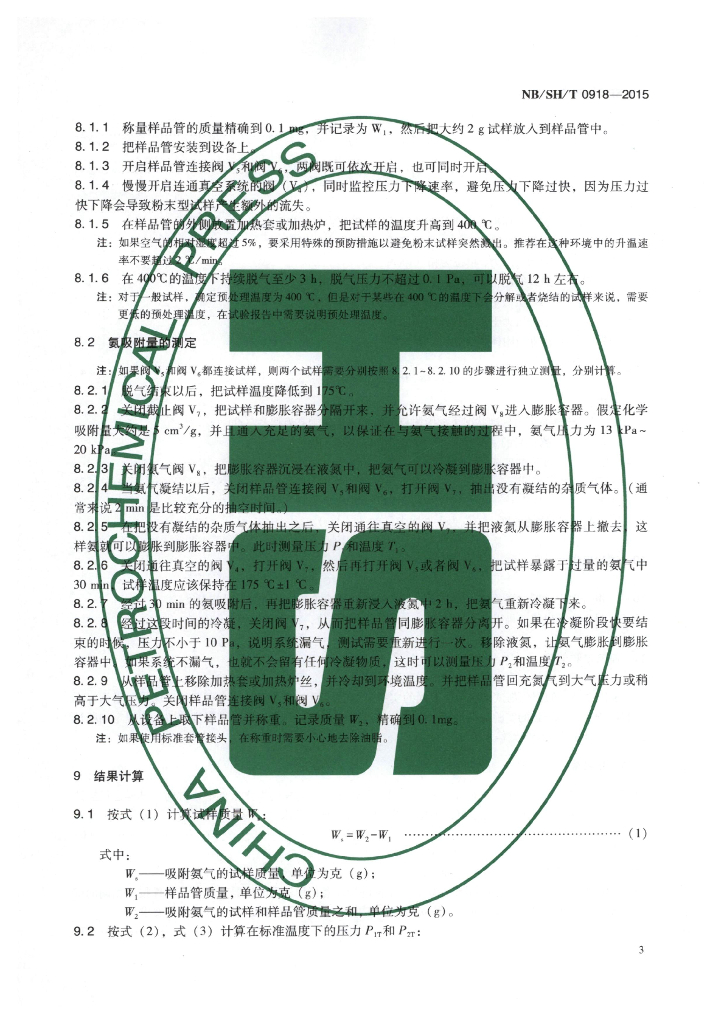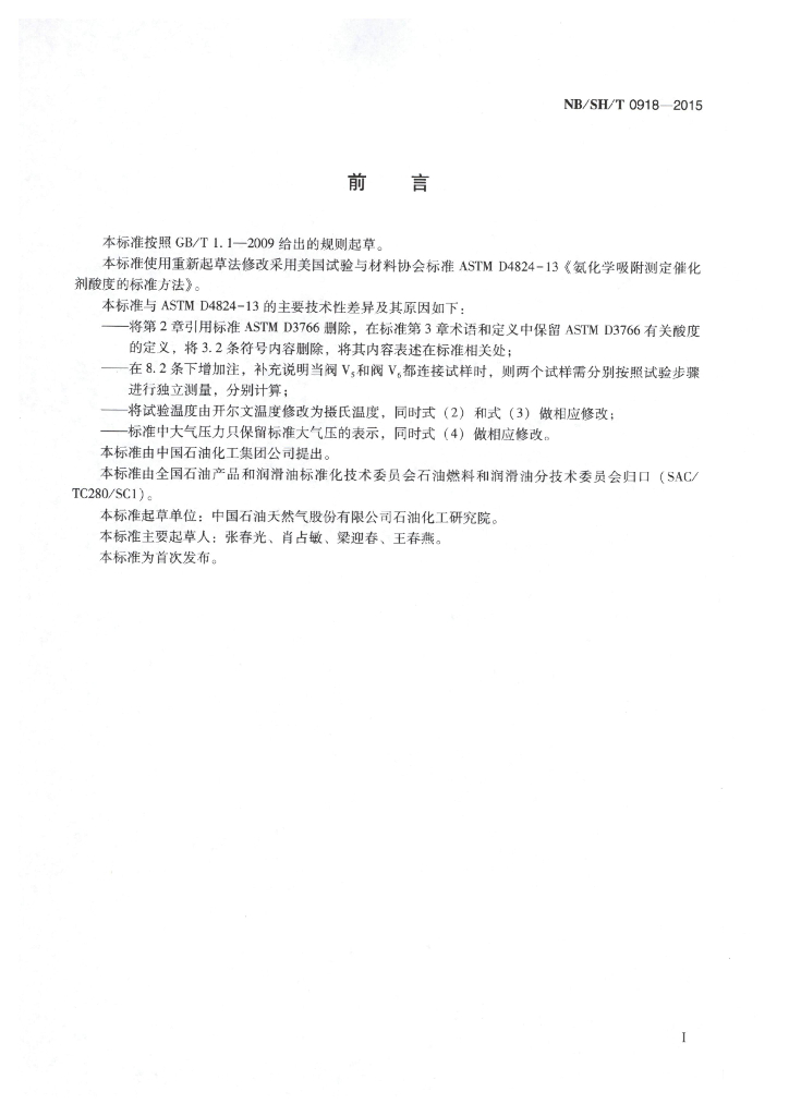 NB/SH/T 0918-2015 固体催化剂酸度的测定 氨化学吸附法