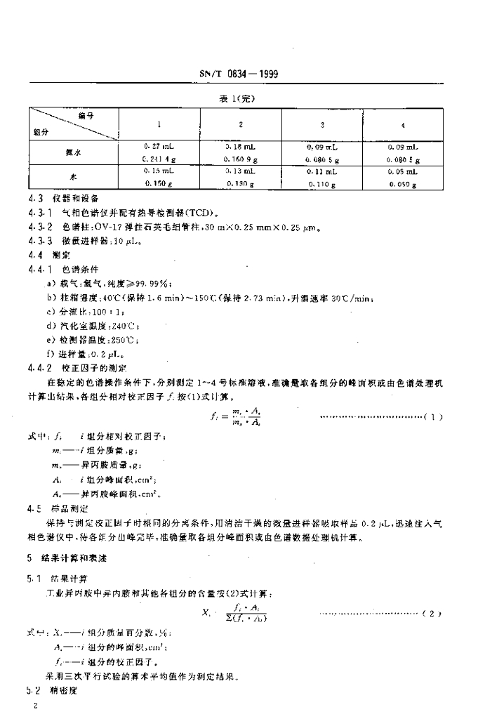 SN/T 0834-1999 出口工业异丙胺含量的测定方法
