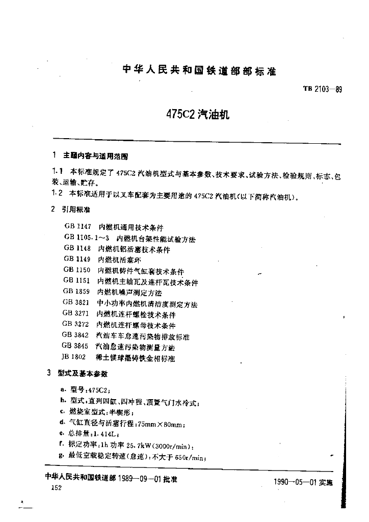 TB 2103-1989 475C2汽油机