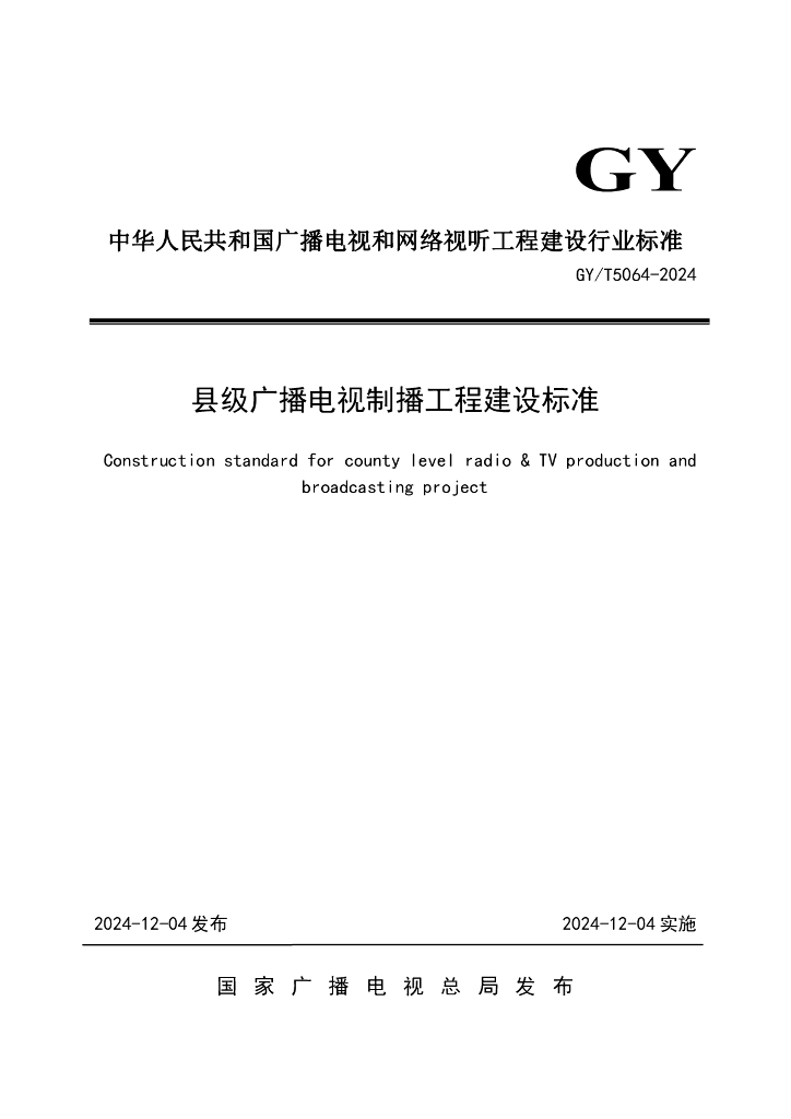 GY/T 5064-2024 县级广播电视制播工程建设技术标准