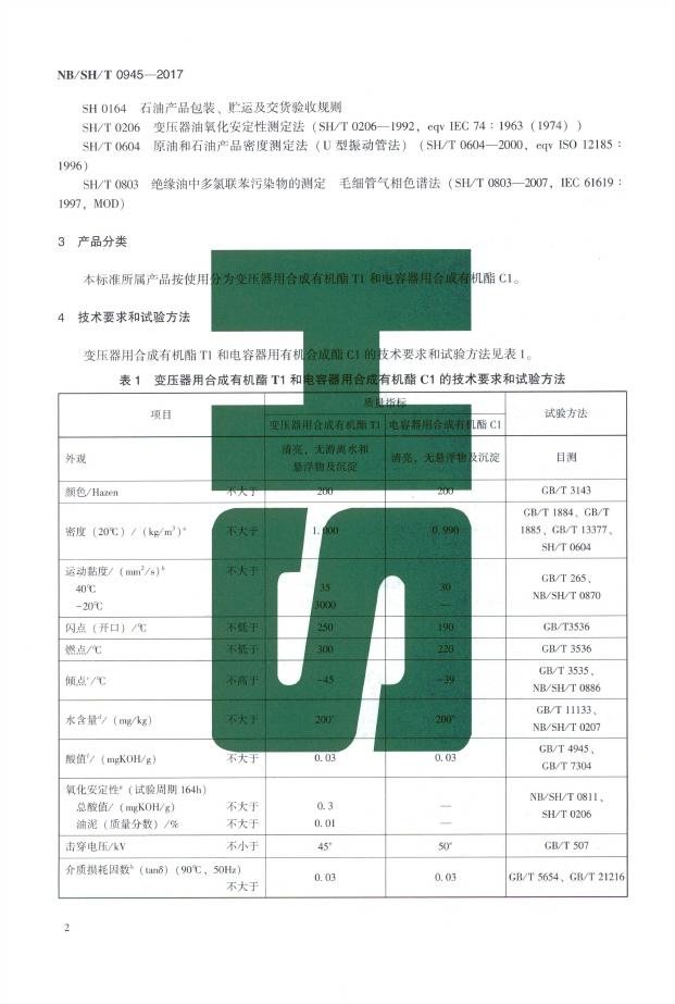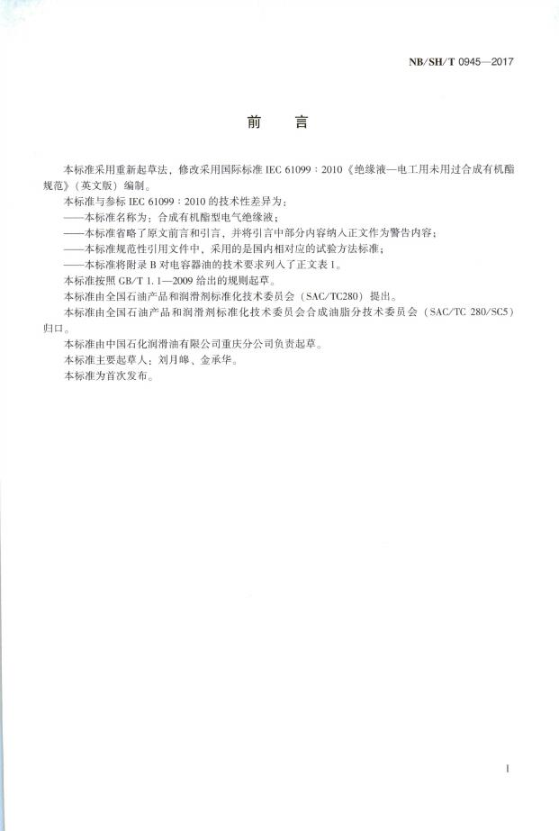 SH/T 0945-2017 合成有机酯型电气绝缘液