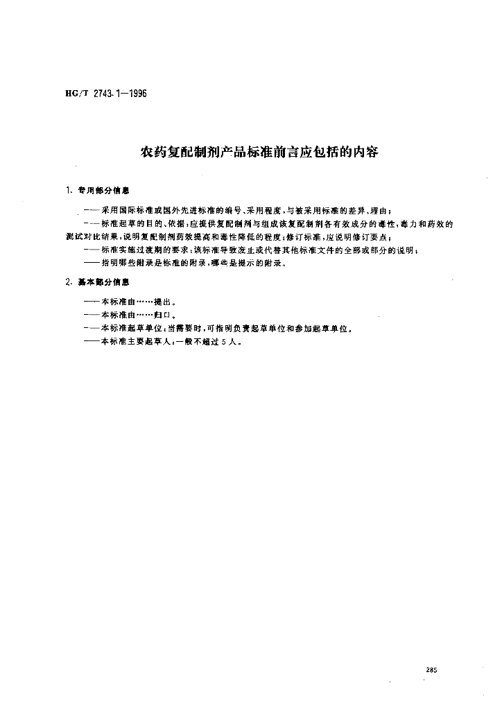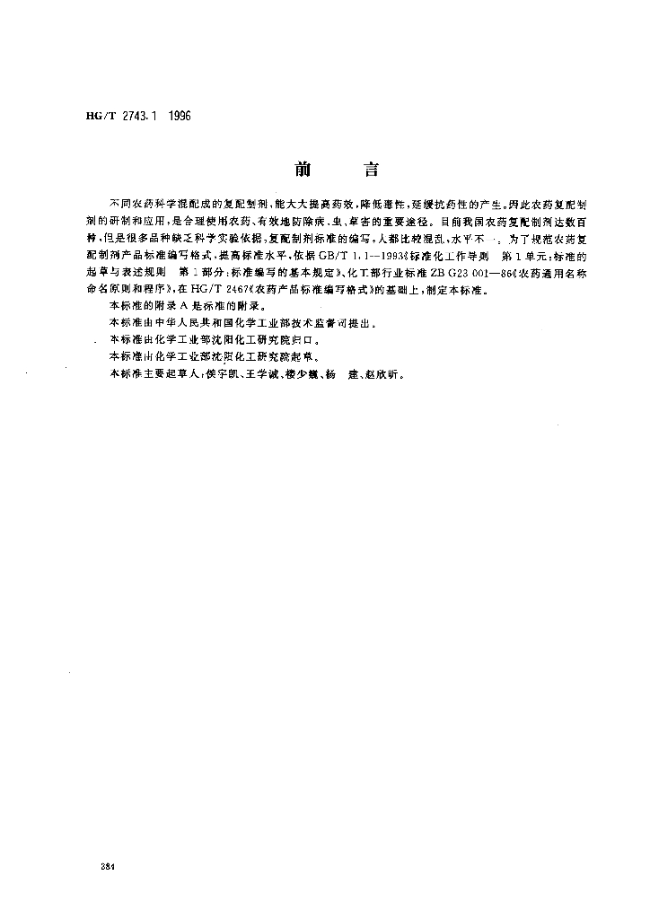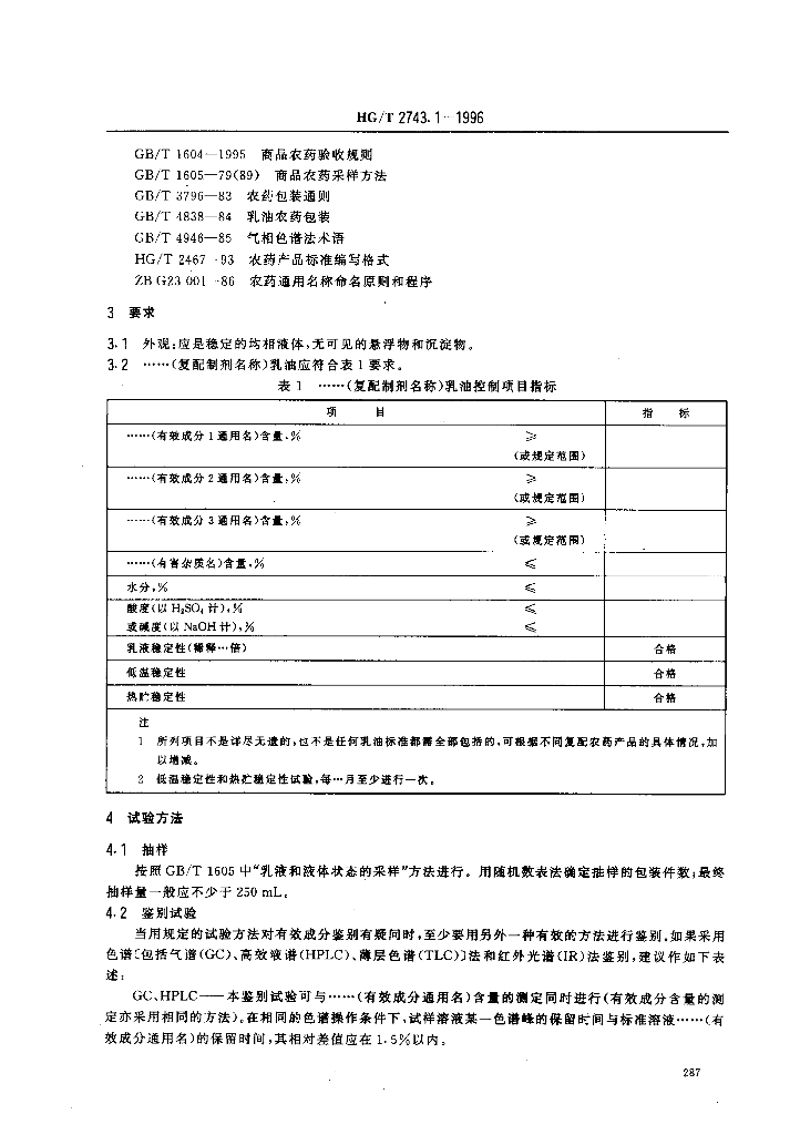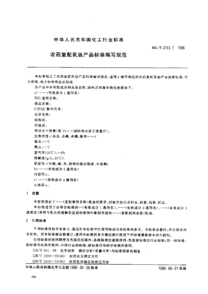 HG/T 2743.1-1996 农药复配乳油产品标准编写规范