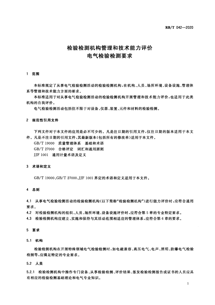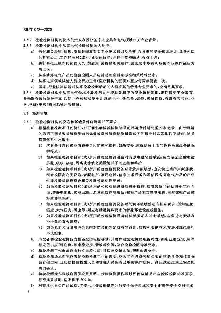RB/T 042-2020 检验检测机构管理和技术能力评价 电气检验检测要求