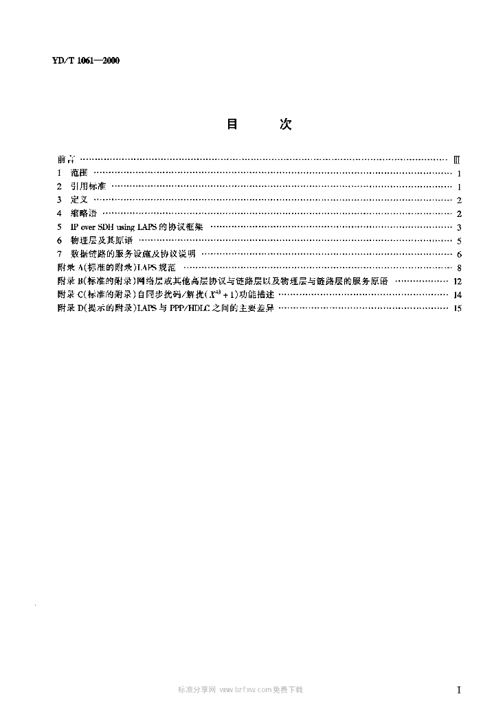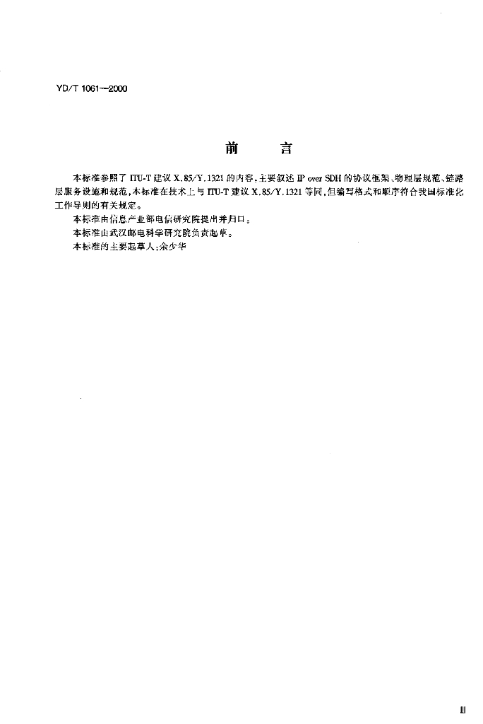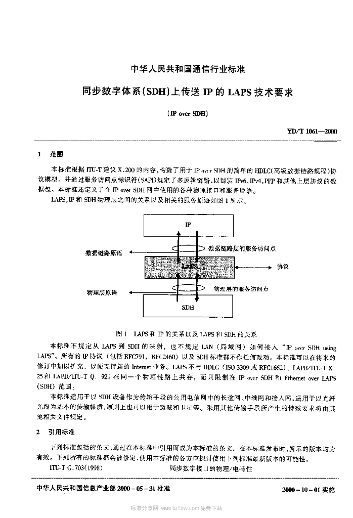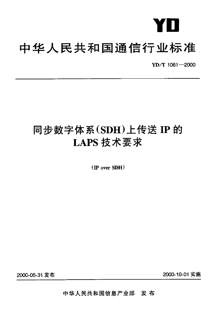 YD/T 1061-2000 同步数字体系(SDH)上传送 IP 的 LAPS 技术要求