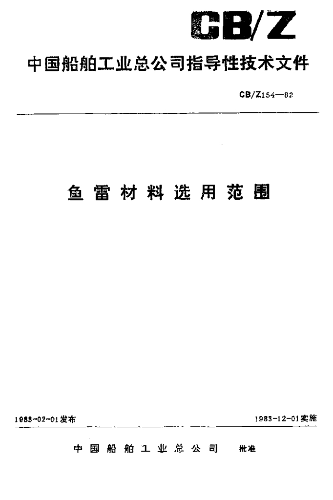 CB/Z 154-1982 鱼雷材料选用范围