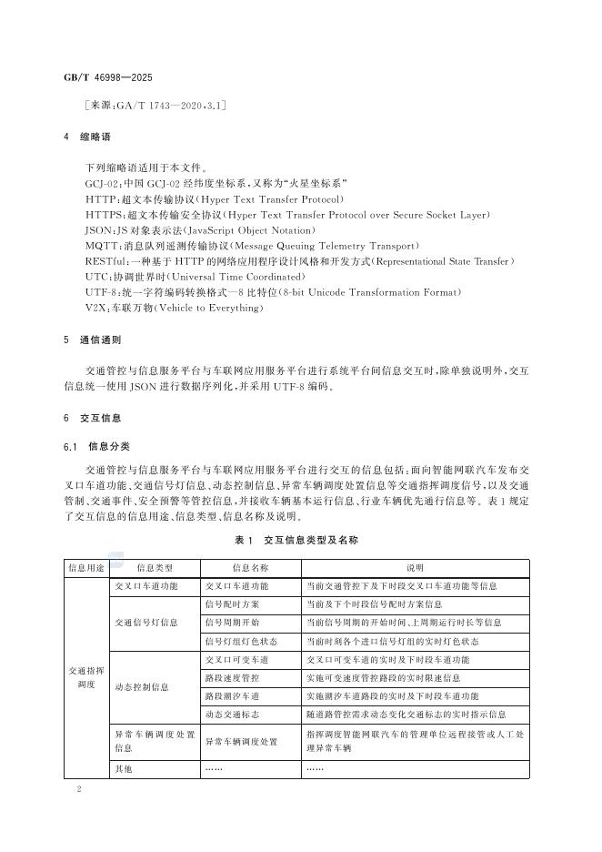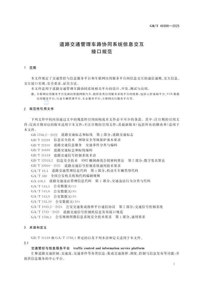 GB/T 46998-2025 道路交通管理车路协同系统信息交互接口规范