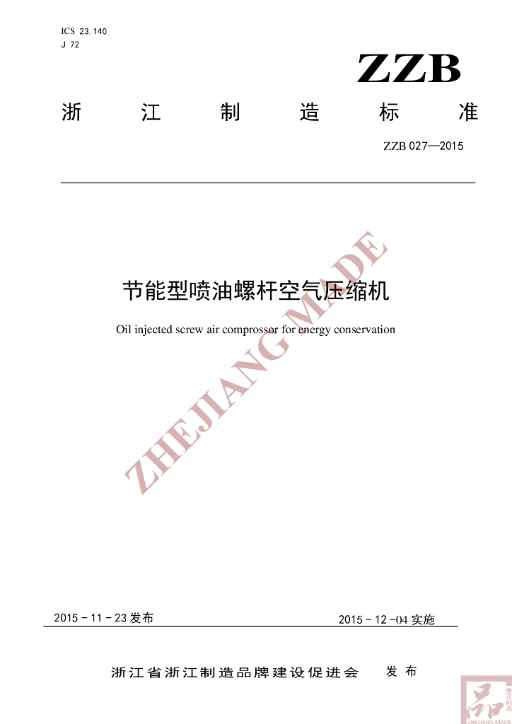 T/ZZB 027-2015 节能型喷油螺杆空气压缩机