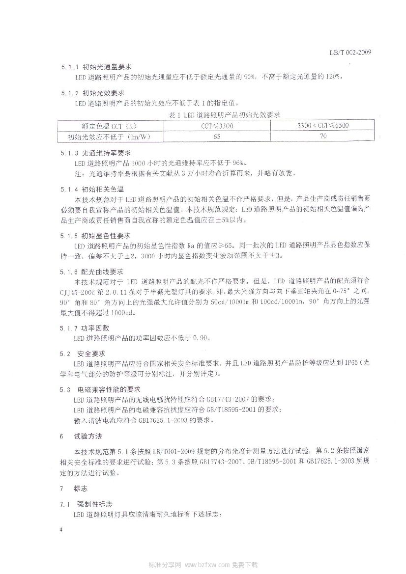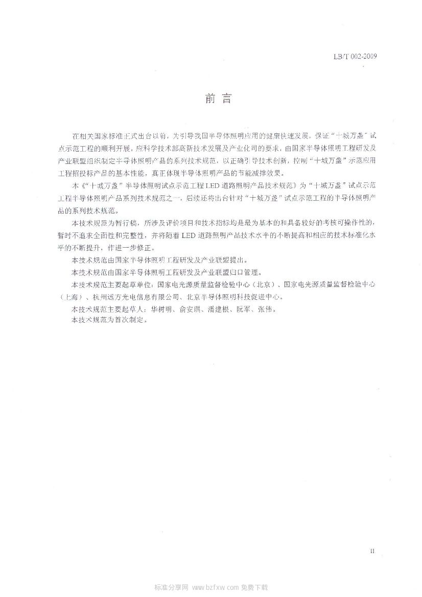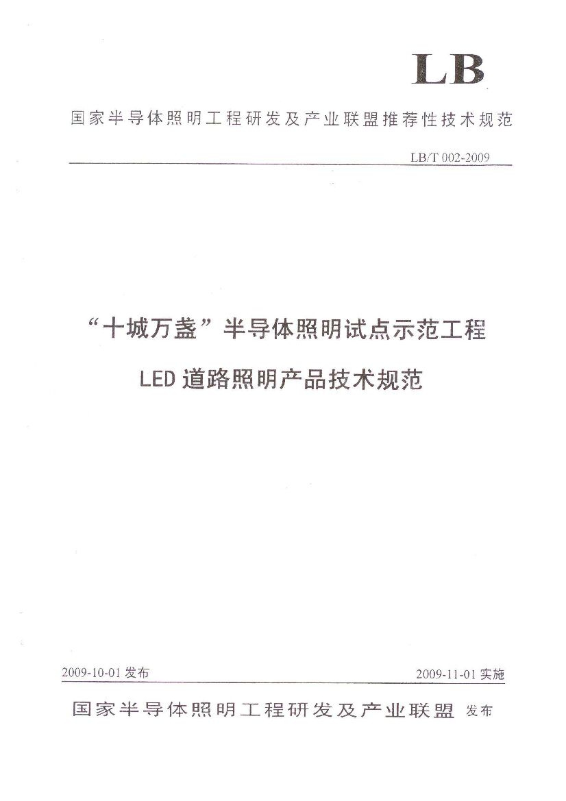 LB/T 002-2009 “十城万盏”半导体照明试点示范工程LED道路照明产品技术规范
