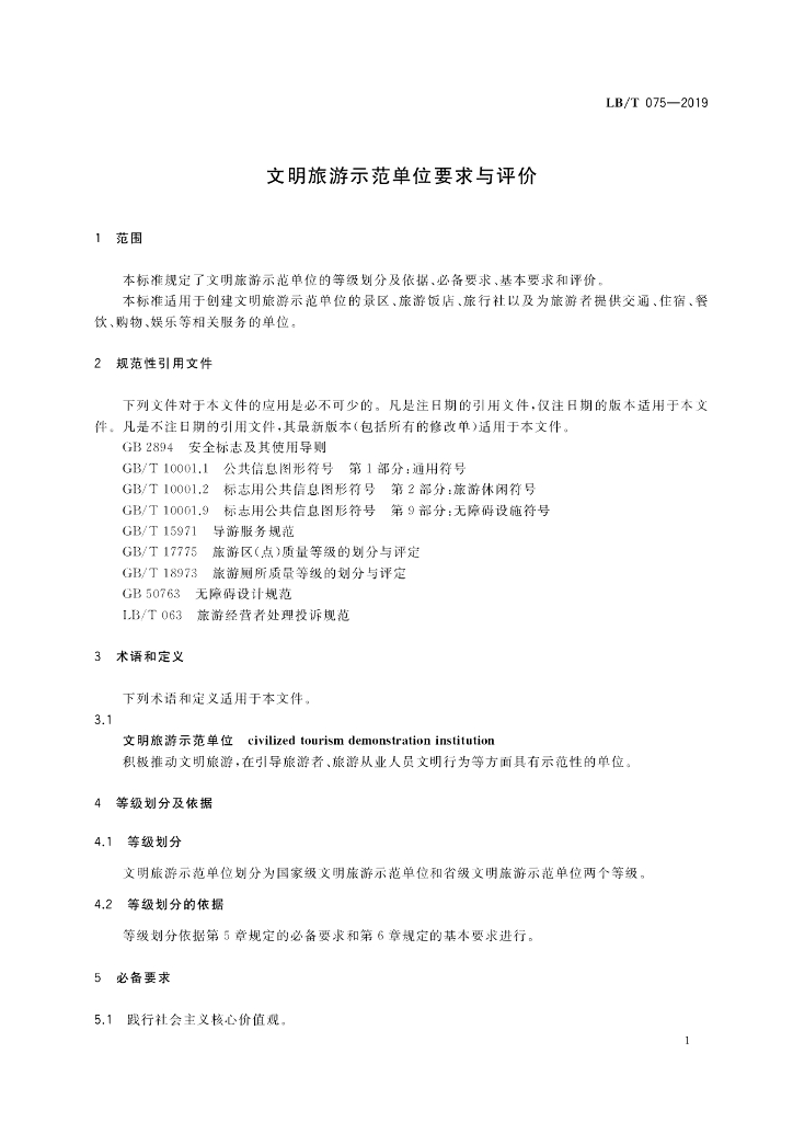 LB/T 075-2019 文明旅游示范单位要求与评价