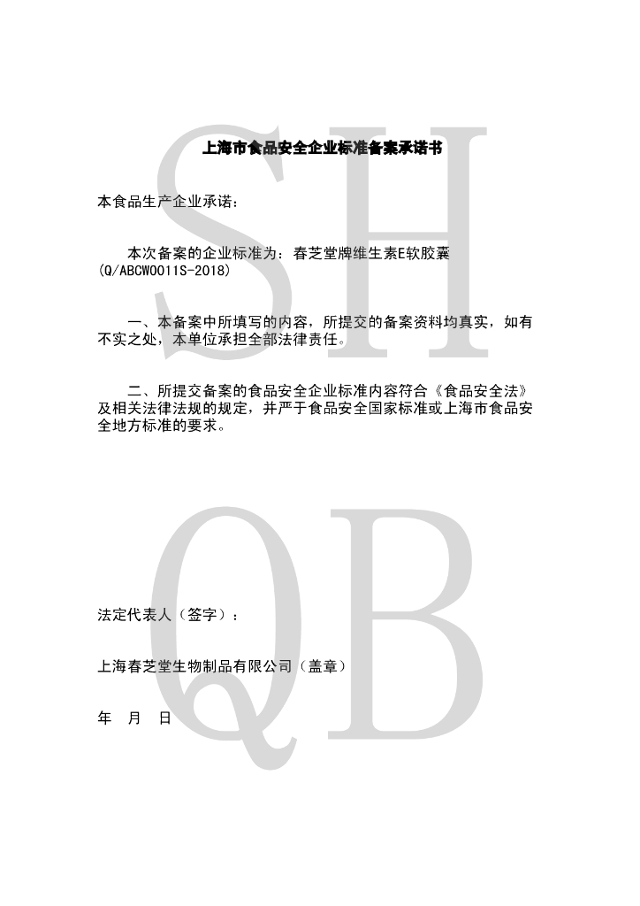 Q/ABCW 0011S-2018 春芝堂牌维生素E软胶囊