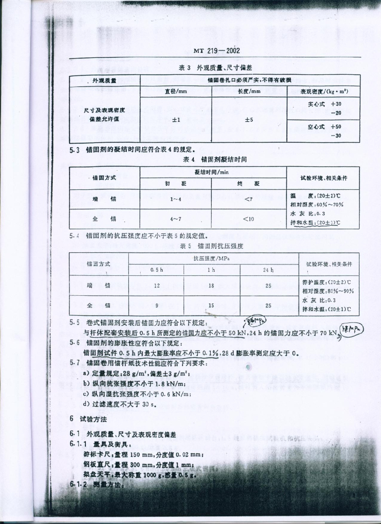MT 219-2002 水泥锚杆 卷式锚固剂