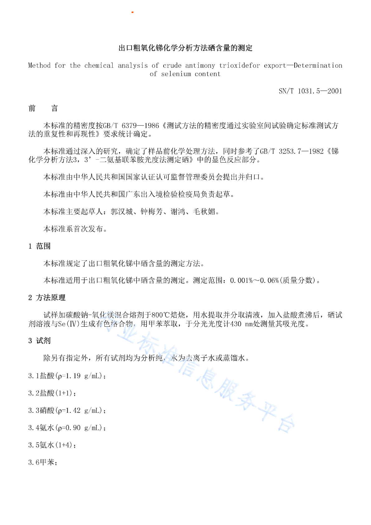 SN/T 1031.5-2001 出口粗氧化锑化学分析方法 硒含量的测定