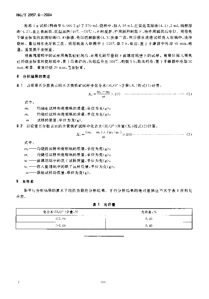 HG/T 2957.6-2004 明矾石矿石中化合水含量的测定重量法
