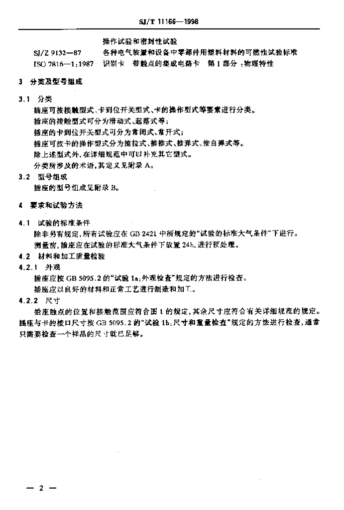 SJ/T 11166-1998 集成电路卡(IC卡)插座总规范