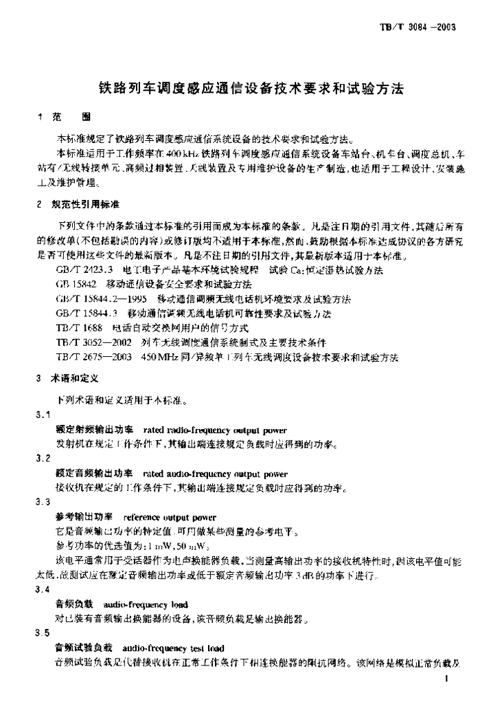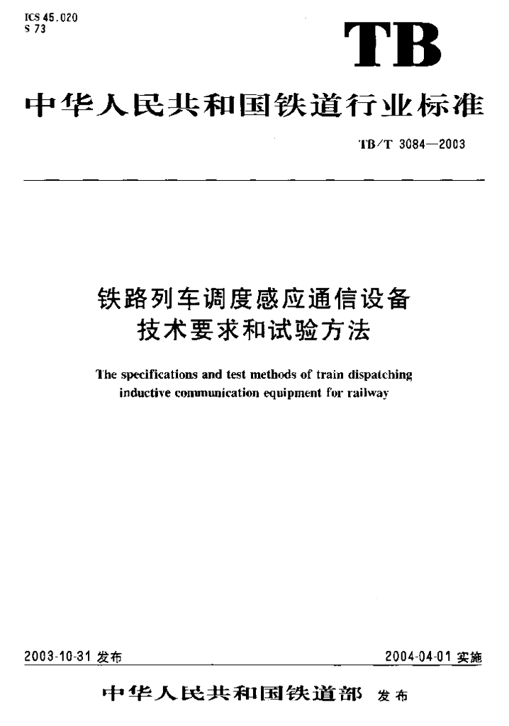 TB/T 3084-2003 铁路列车调度感应通信设备技术要求和试验方法