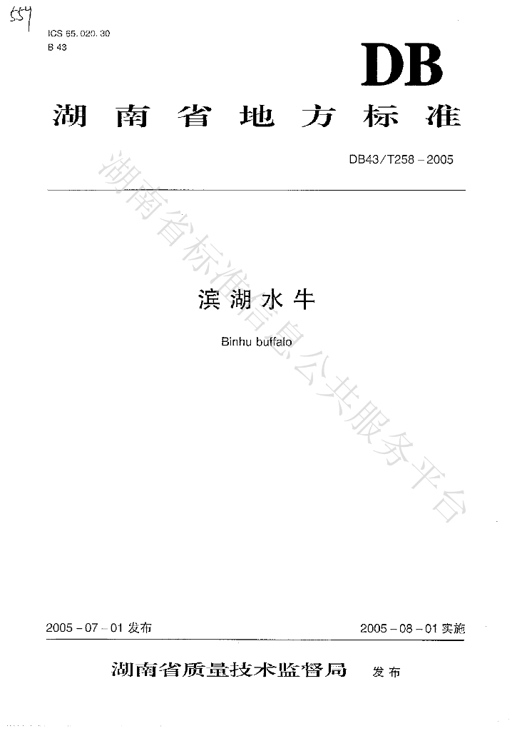 DB43/T 258-2005 滨湖水牛
