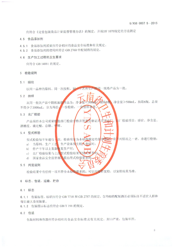 Q/XSB 0007S-2015 香格里拉市圣宝食品进出口有限责任公司 配制酒