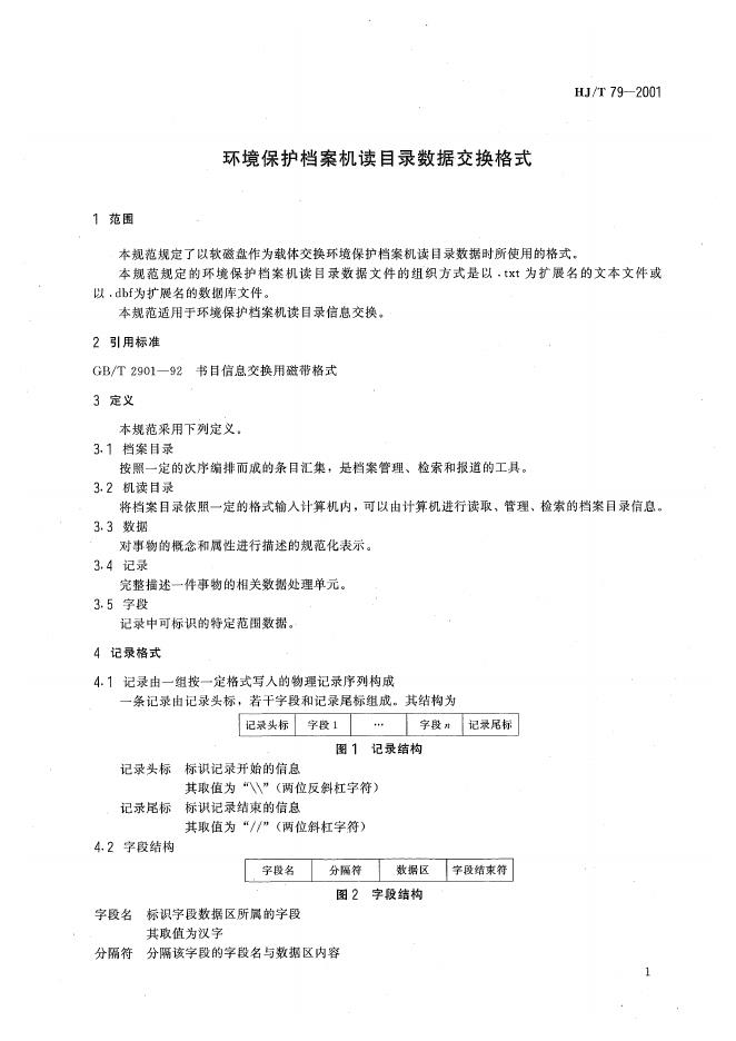 HJ/T 79-2001 环境保护档案机读目录数据交换格式