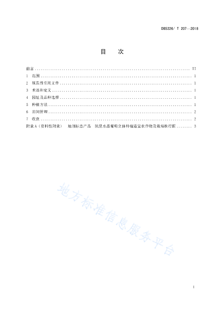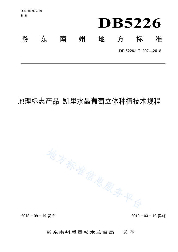 DB5226/T 207-2018 地理标志产品 凯里水晶葡萄立体种植技术规程