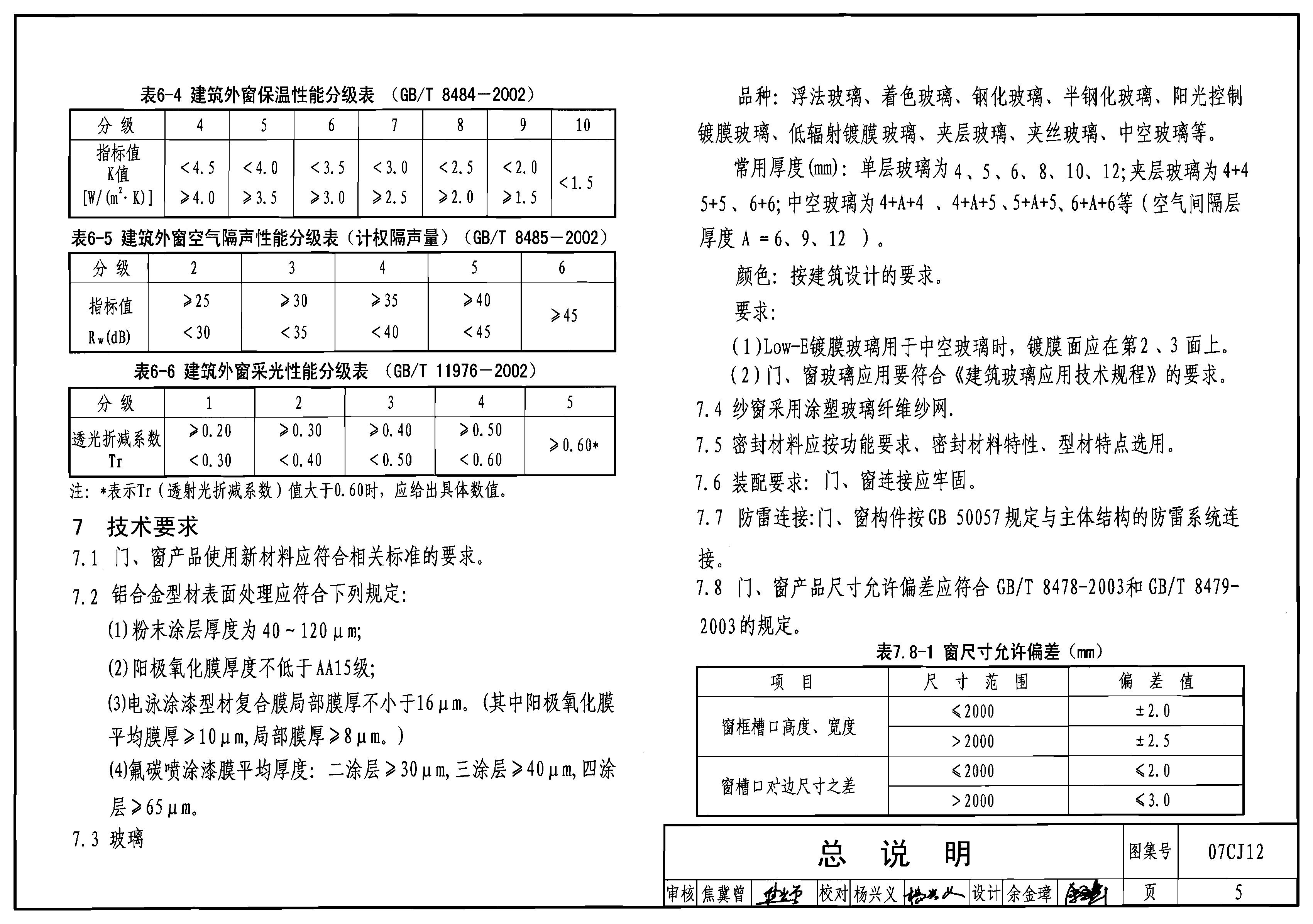07CJ12 节能铝合金门窗-蓝光系列参考图集