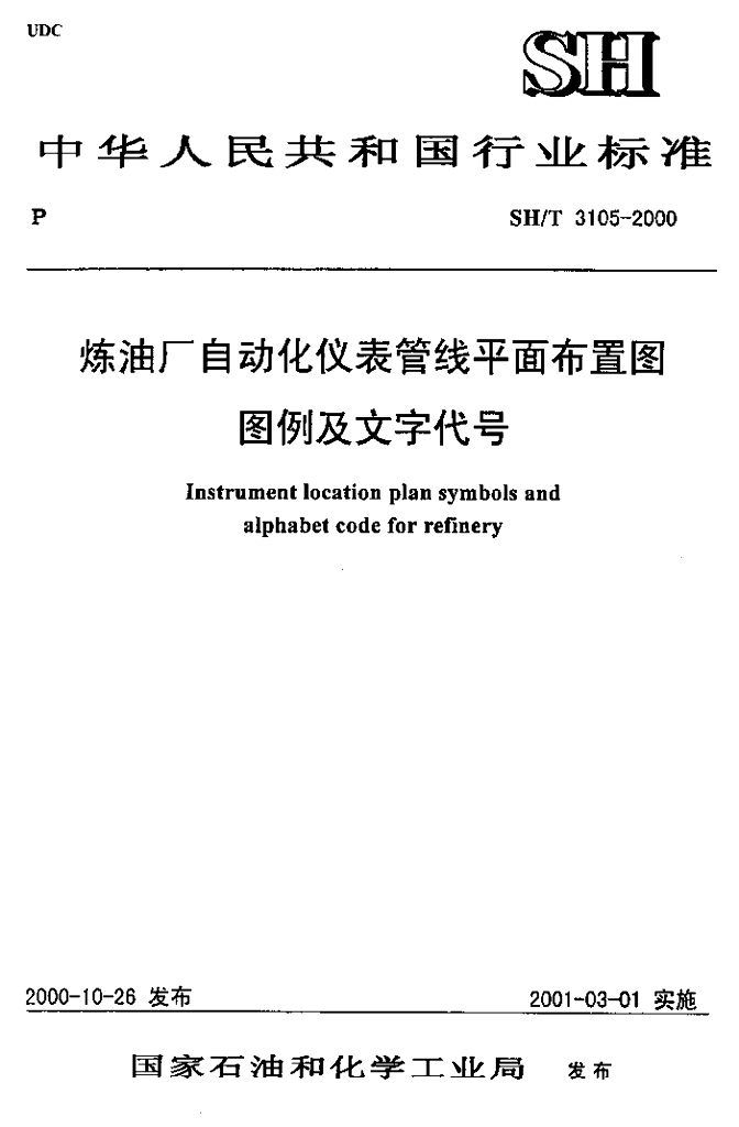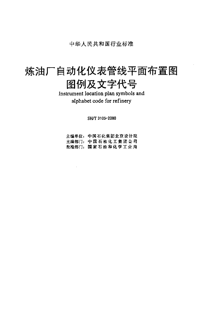 SH/T 3105-2000 炼油厂自动化仪表管线平面布置图图例及文字代号