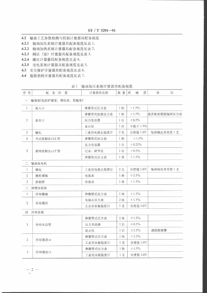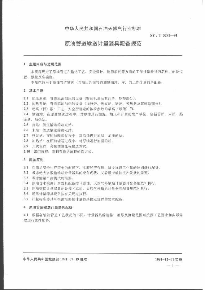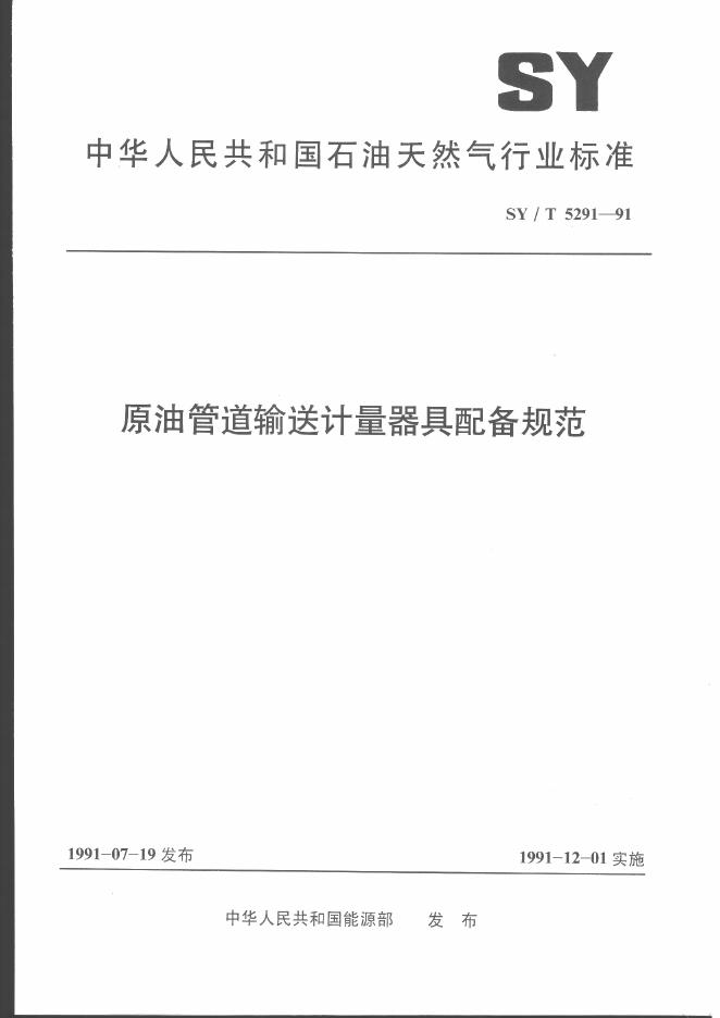 SY/T 5291-1991 原油管道输送计量器具配备规范