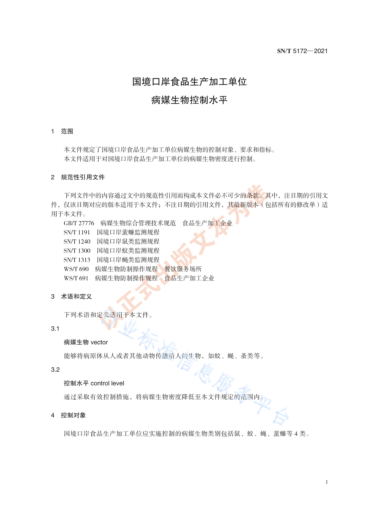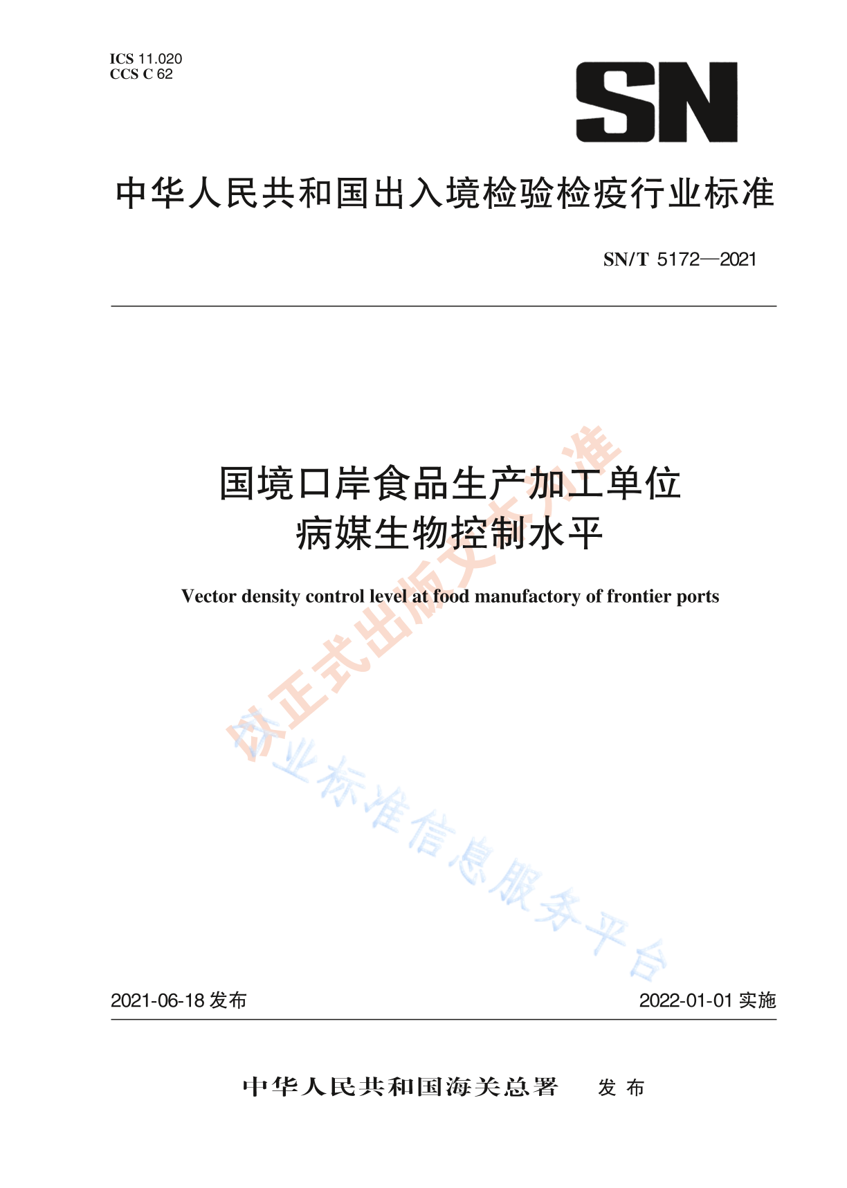SN/T 5172-2021 国境口岸食品生产加工单位病媒生物控制水平