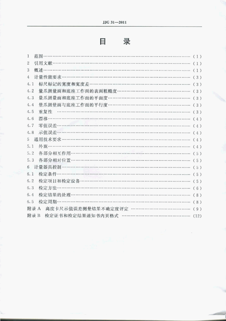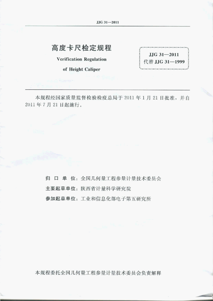 JJG 31-2011 高度卡尺检定规程