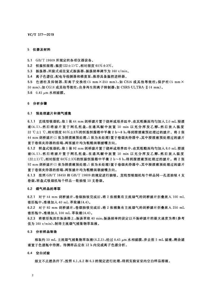 YC/T 377-2019 卷烟 主流烟气中氨的测定 浸渍处理剑桥滤片捕集-离子色谱法