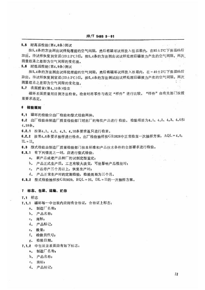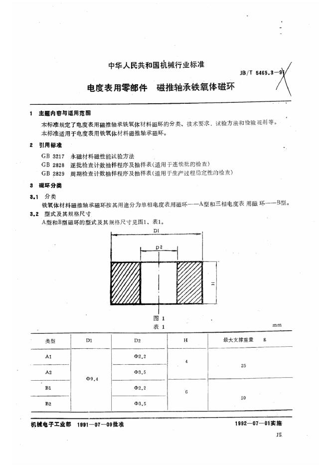 JB/T 5465.3-1991 电度表用零部件 磁推轴承铁氧体磁环