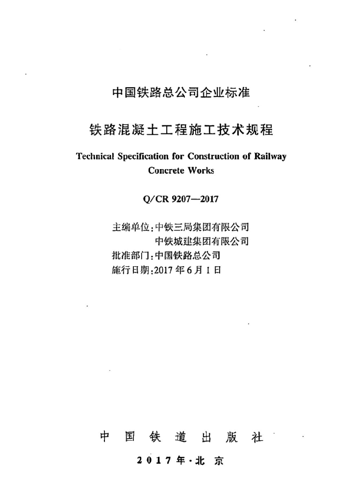 - 13Q/CR 9207-2017 铁路混凝土工程施工技术规程