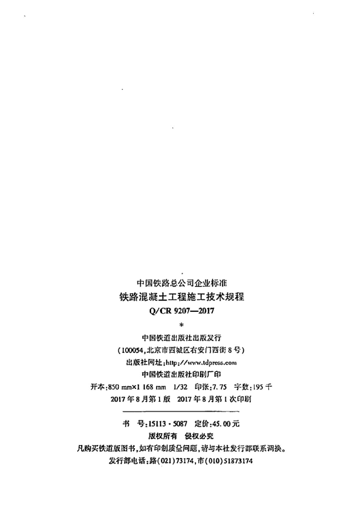 Q/CR 9207-2017 铁路混凝土工程施工技术规程