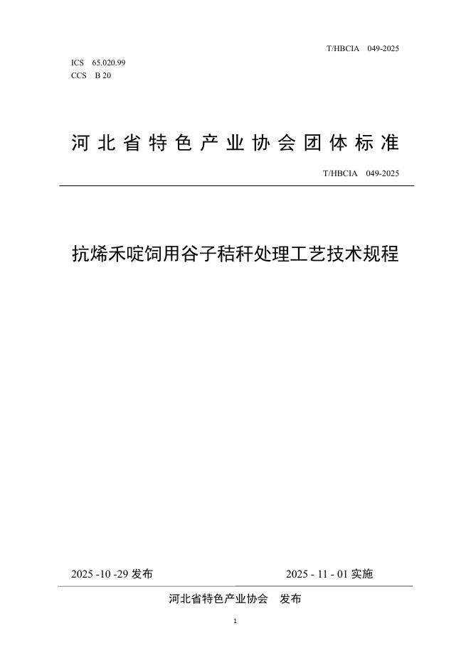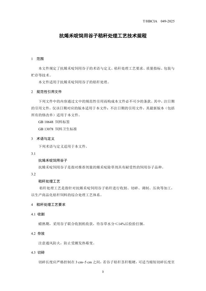 T/HBCIA 049-2025 抗烯禾啶饲用谷子秸秆处理工艺技术规程