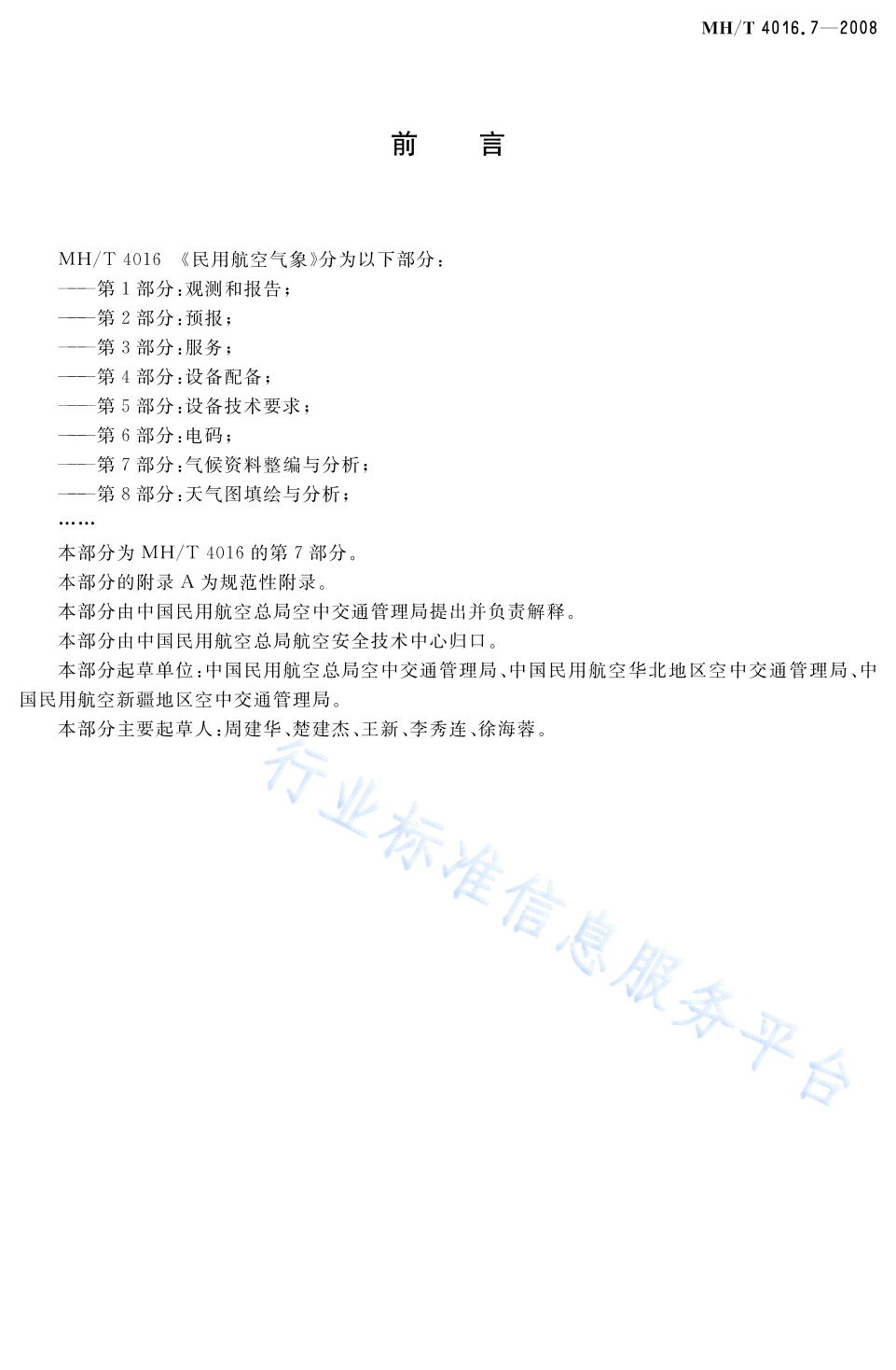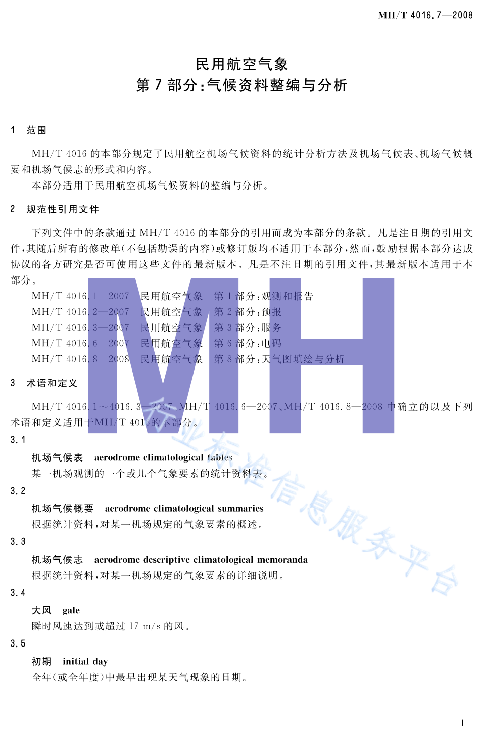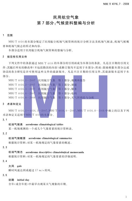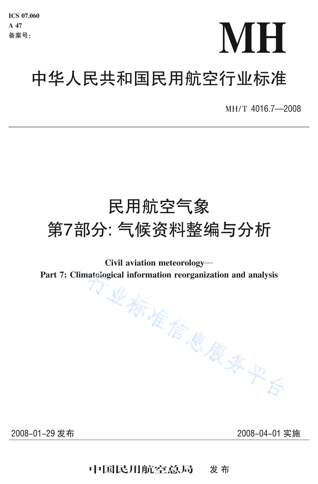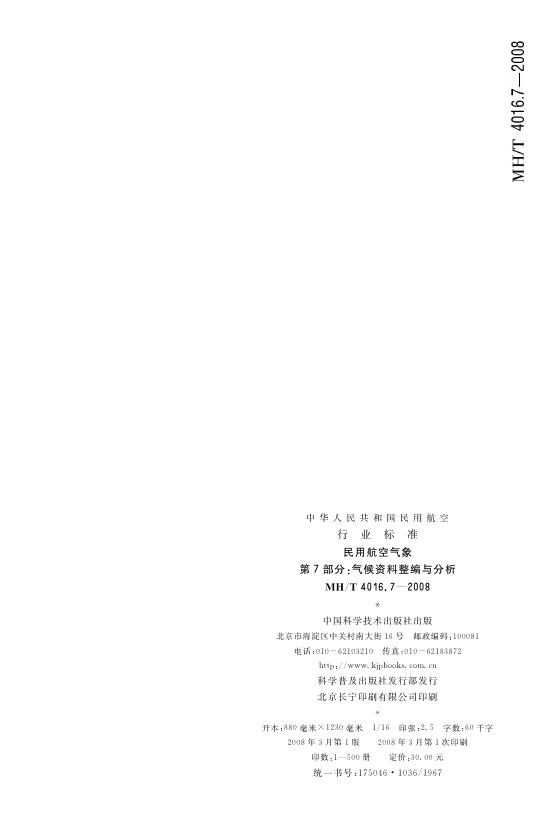 MH/T 4016.7-2008 民用航空气象 第7部分:气候资料整编与分析