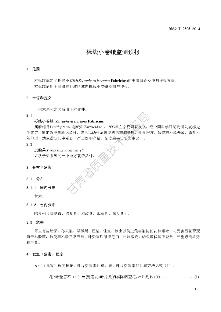 DB62/T 2505-2014 栎线小卷蛾监测预报