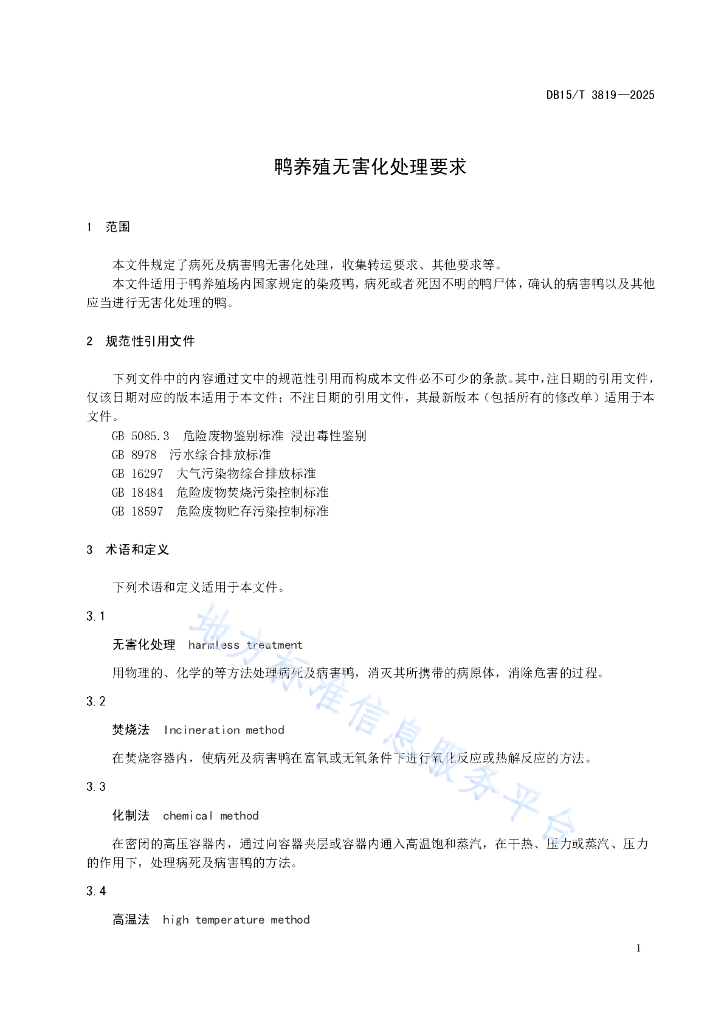 DB15/T 3819-2025 鸭养殖无害化处理要求