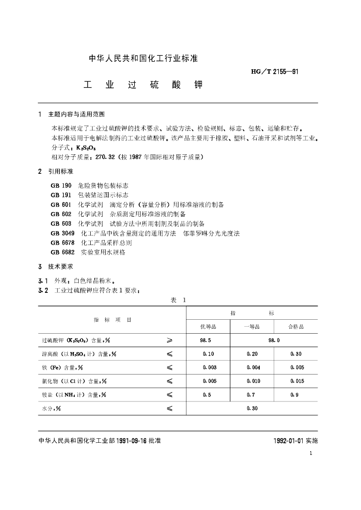 HG/T 2155-1991 工业过硫酸钾
