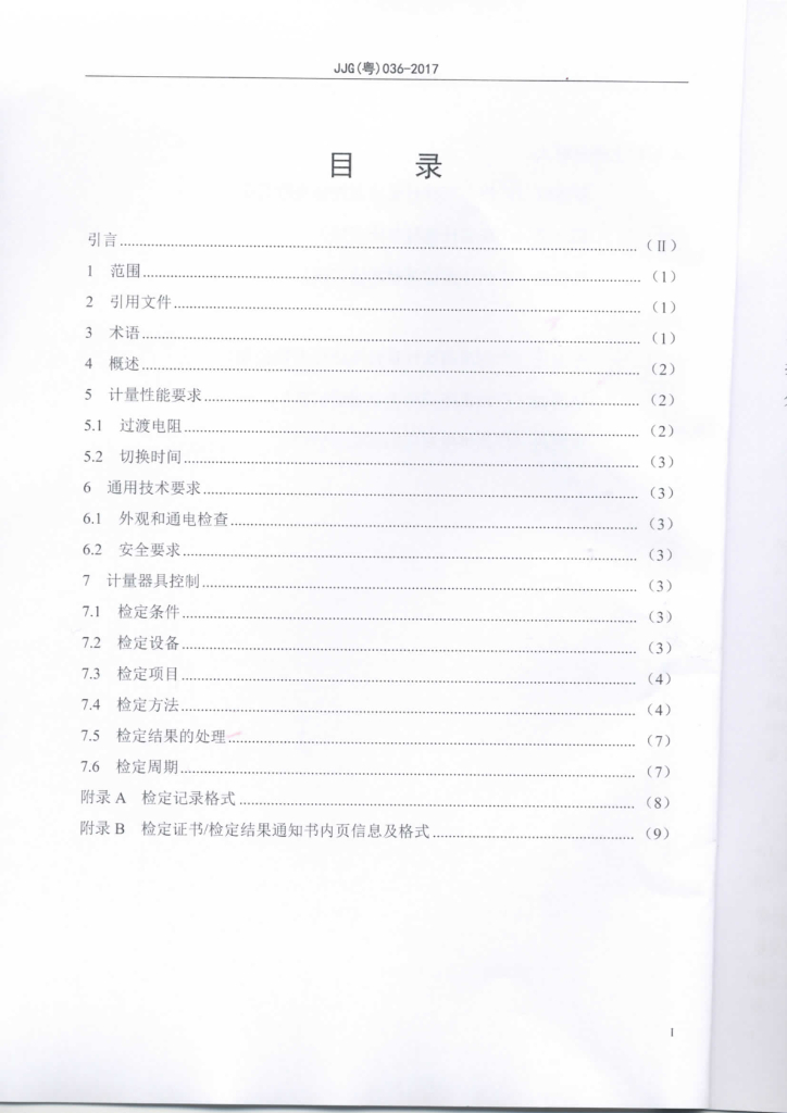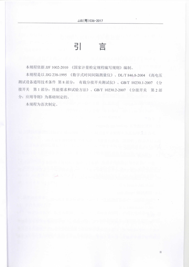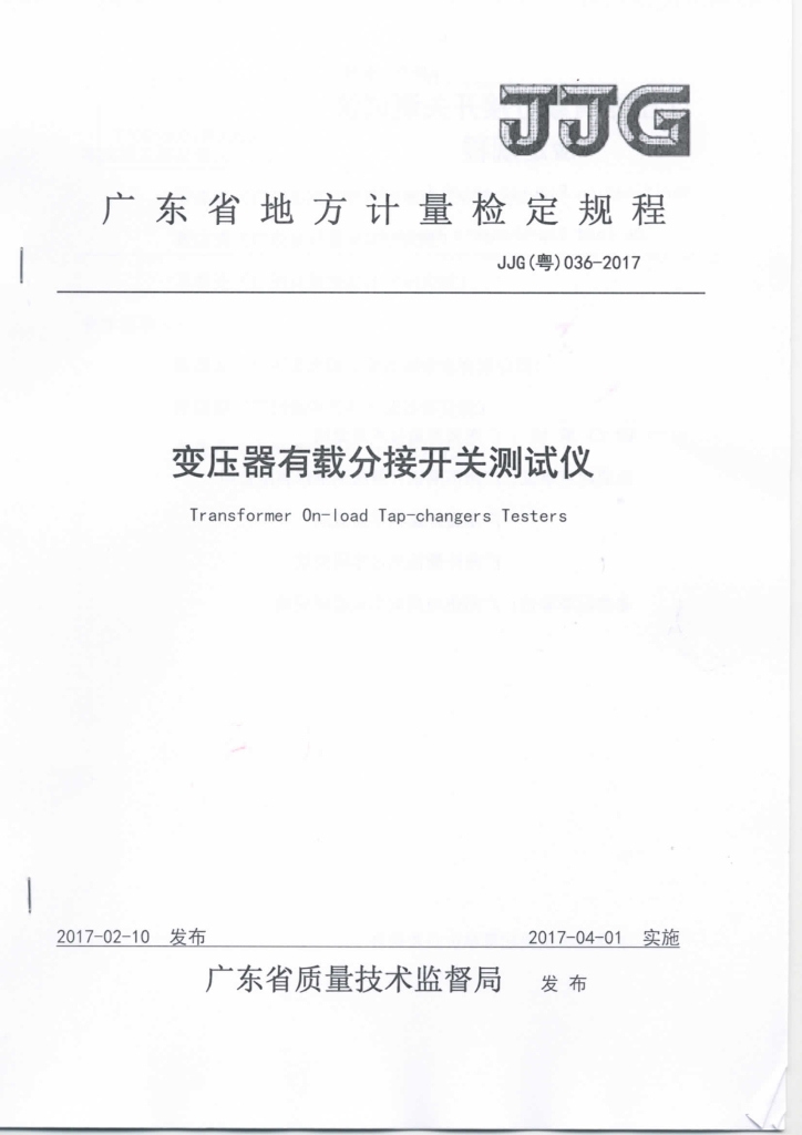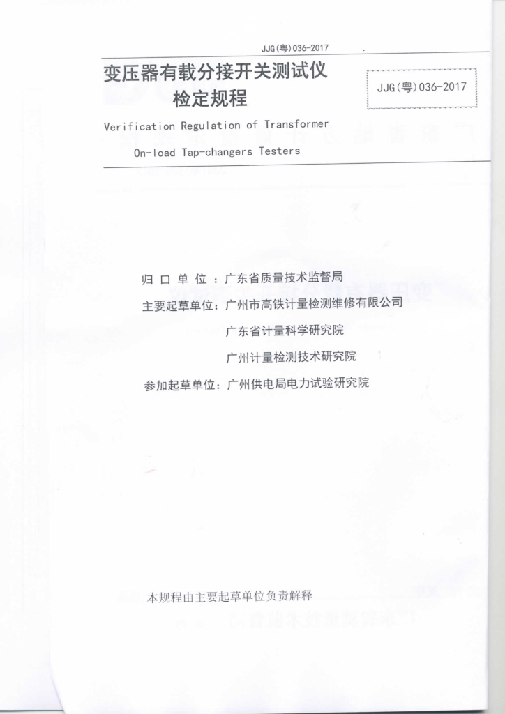 JJG(粤)036-2017 变压器有载分接开关测试仪检定规程
