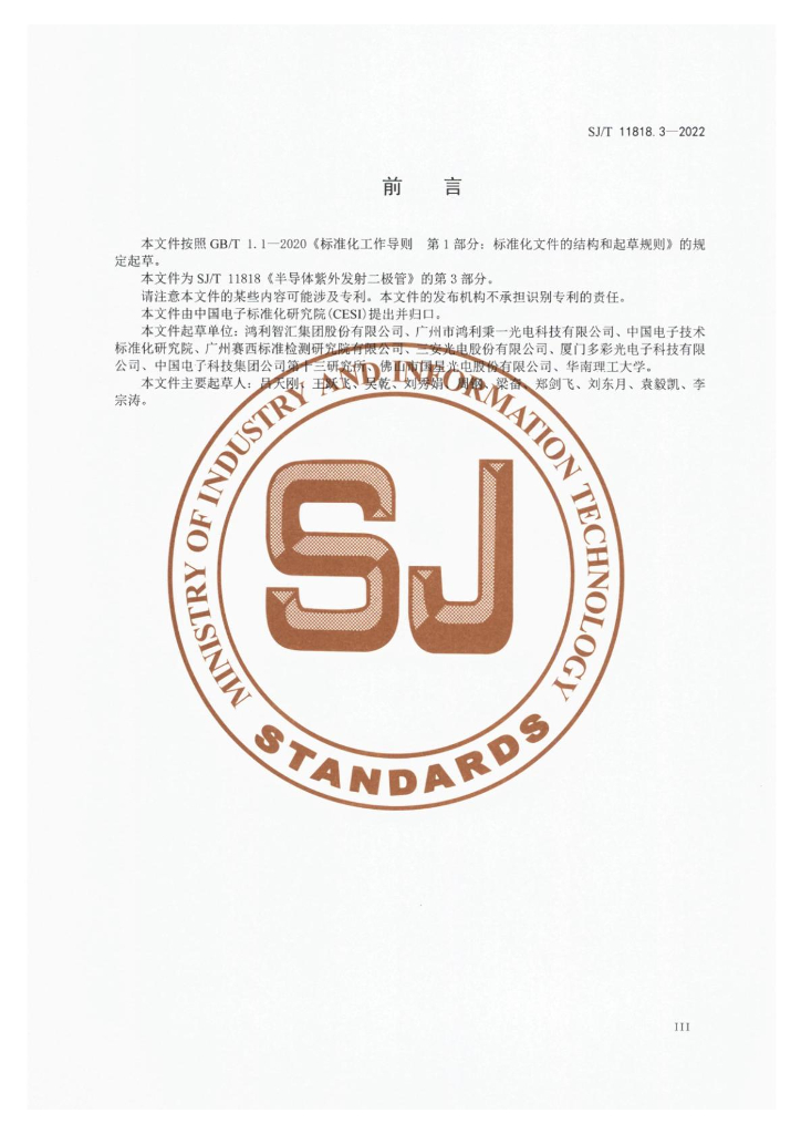 鸿利智汇集团股份有限公司、广州市鸿利秉一光电科技有限公司、中国电子技术标准化研究院、广州赛西标准检测研究院院有限公司、三安光电股份有限公司、厦门多彩光电子科技有有限公司、中国电子科技集团有限公司第十三研究所、佛山市国星光电股份有限公司、华南理工大学
