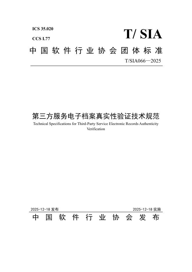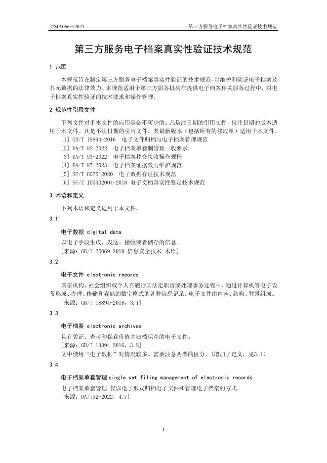 T/SIA 066-2025 第三方服务电子档案真实性验证技术规范