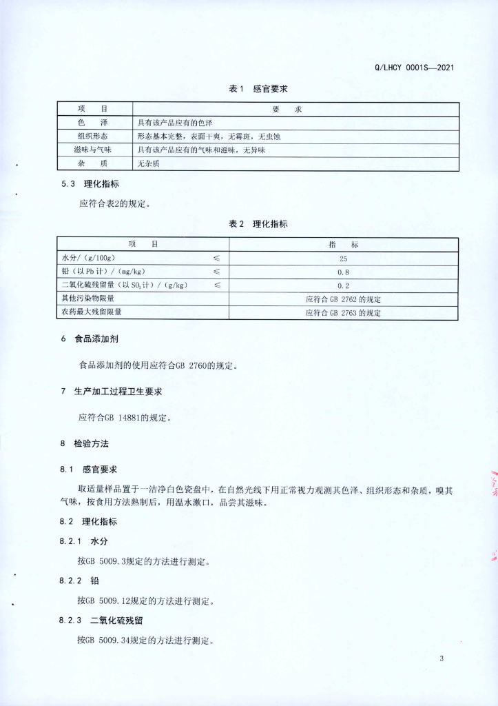 Q/LHCY 0001S-2021 蔬菜干制品