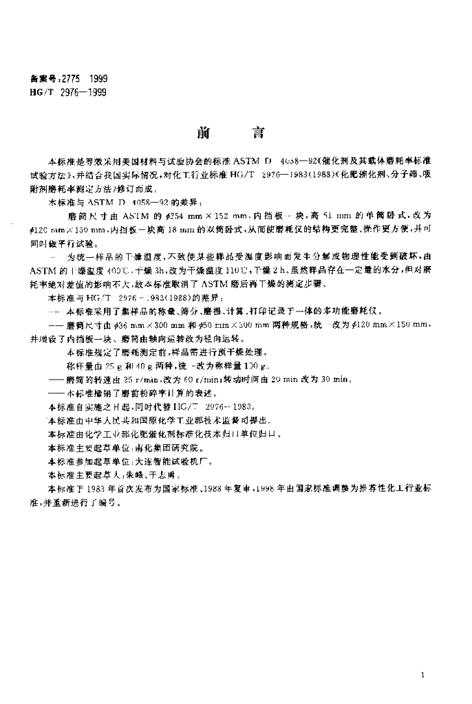 HG/T 2976-1999 化肥催化剂磨耗率测定
