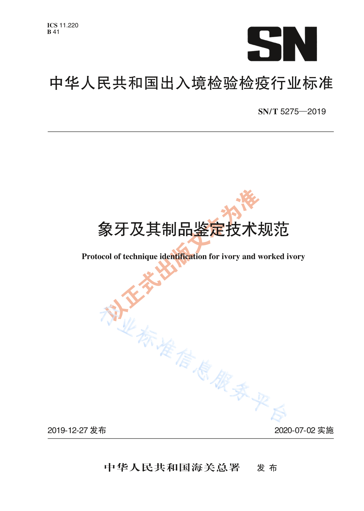 SN/T 5275-2019 象牙及其制品鉴定技术规范