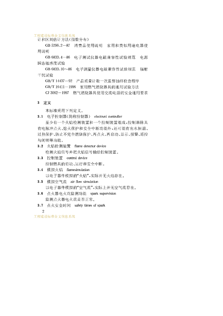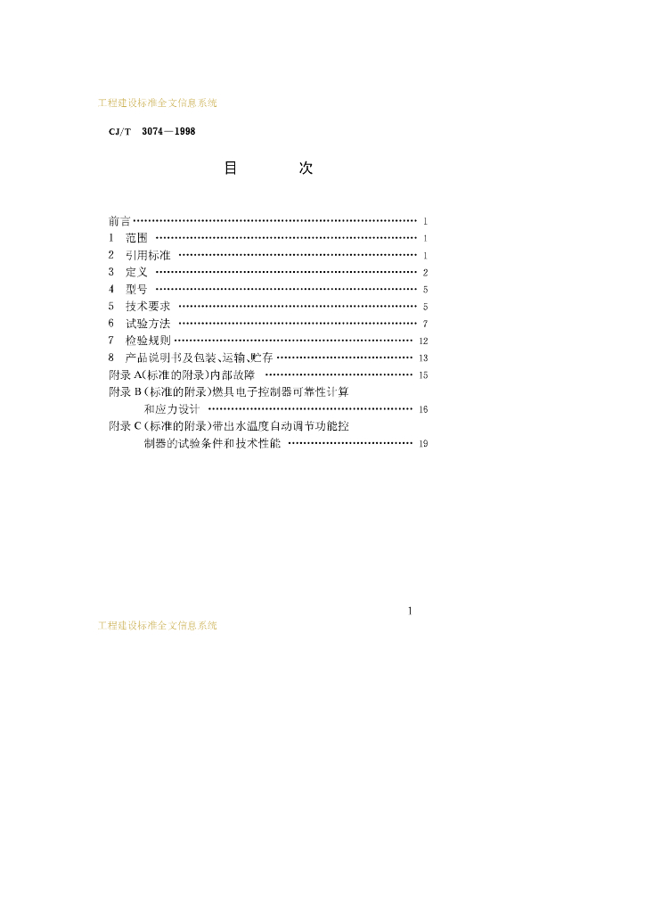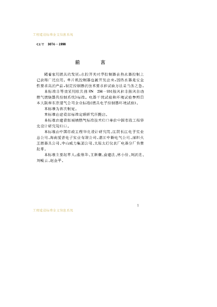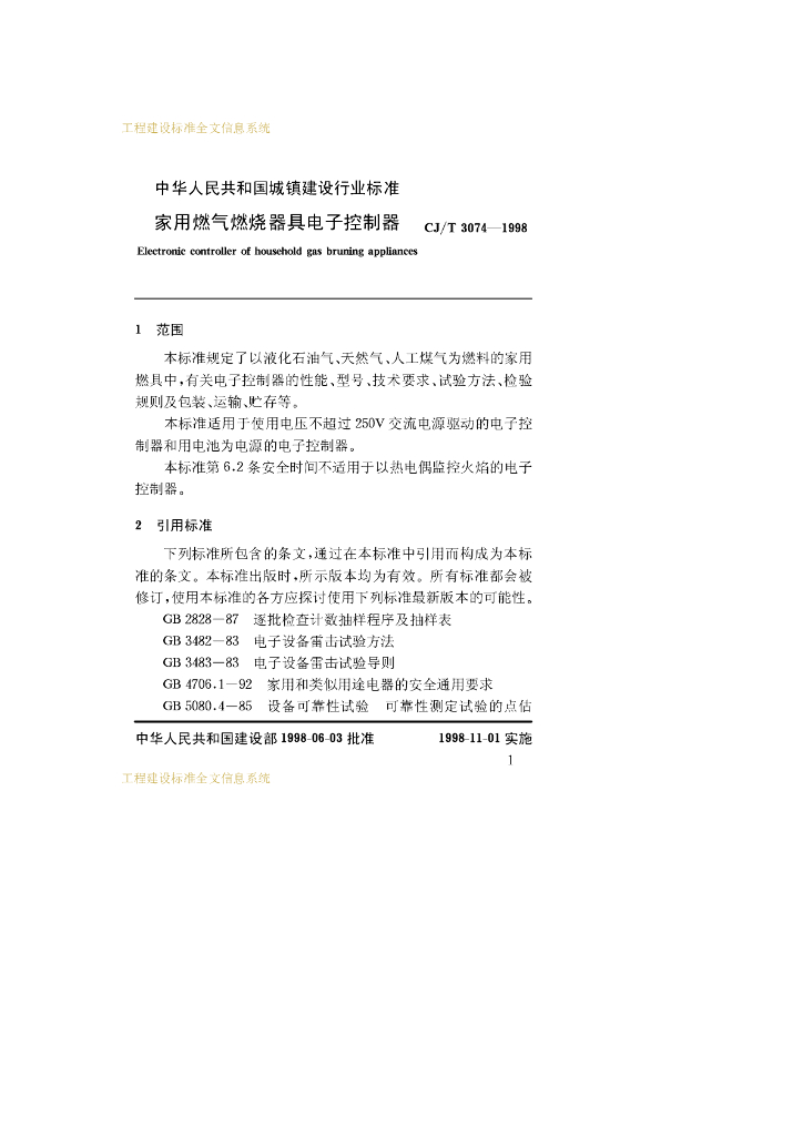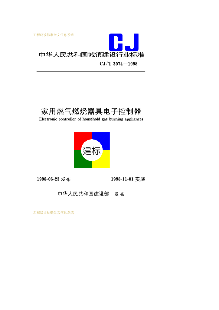 CJ/T 3074-1998 家用燃气燃烧器具电子控制器